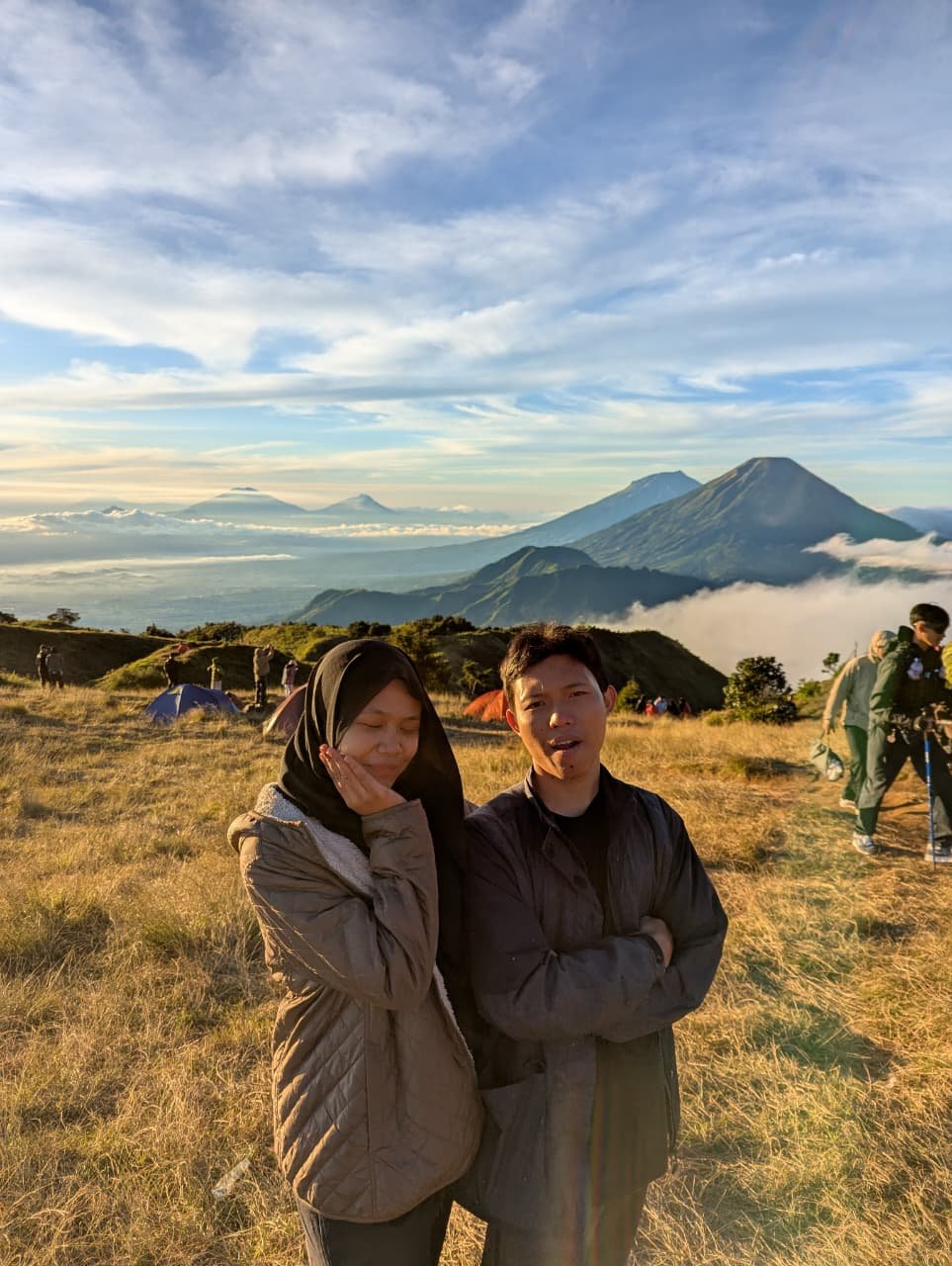 Mendaki gunung berkali-kali sudah jadi hobi kita. entah sejak kapan kita jadi suka naik gunung hehehehe. awalnya aku ngambek sihh tapi lama lama suka ke gunaung dan hobi deh. Capeknya nanjak hilang seketika saat aku lihat senyum kamu di antara awan-awan itu. Alahhhh kepesenggg